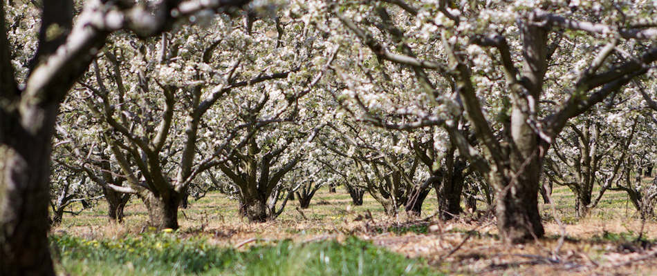 The creation of every pear begins with a bud. During the sunny spring days in Paracombe the bud blossoms into five perfect petals. At this point Chamberlain Orchards becomes a beautiful sea of white, as it has since 1932.